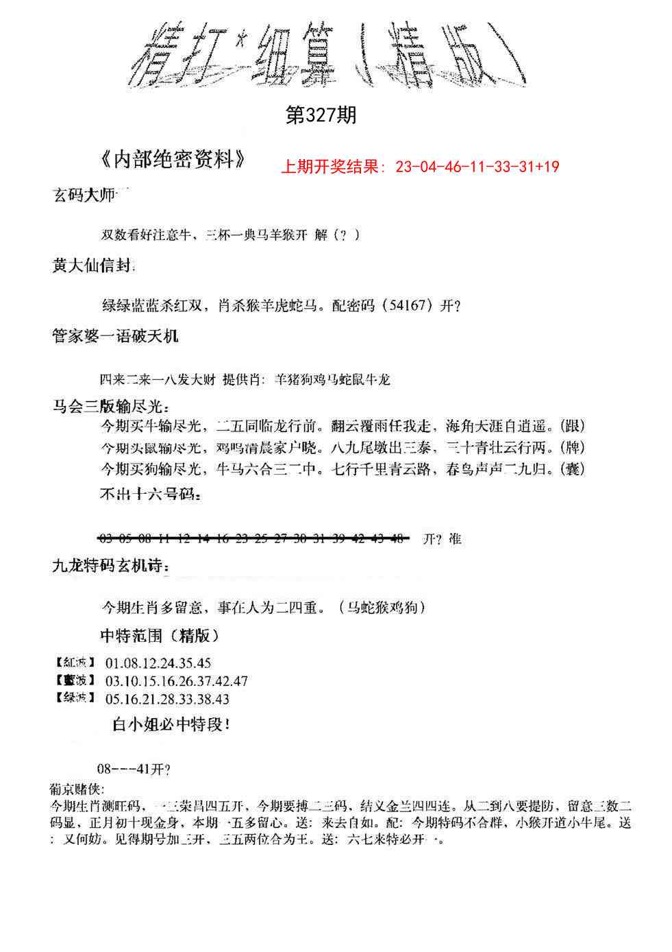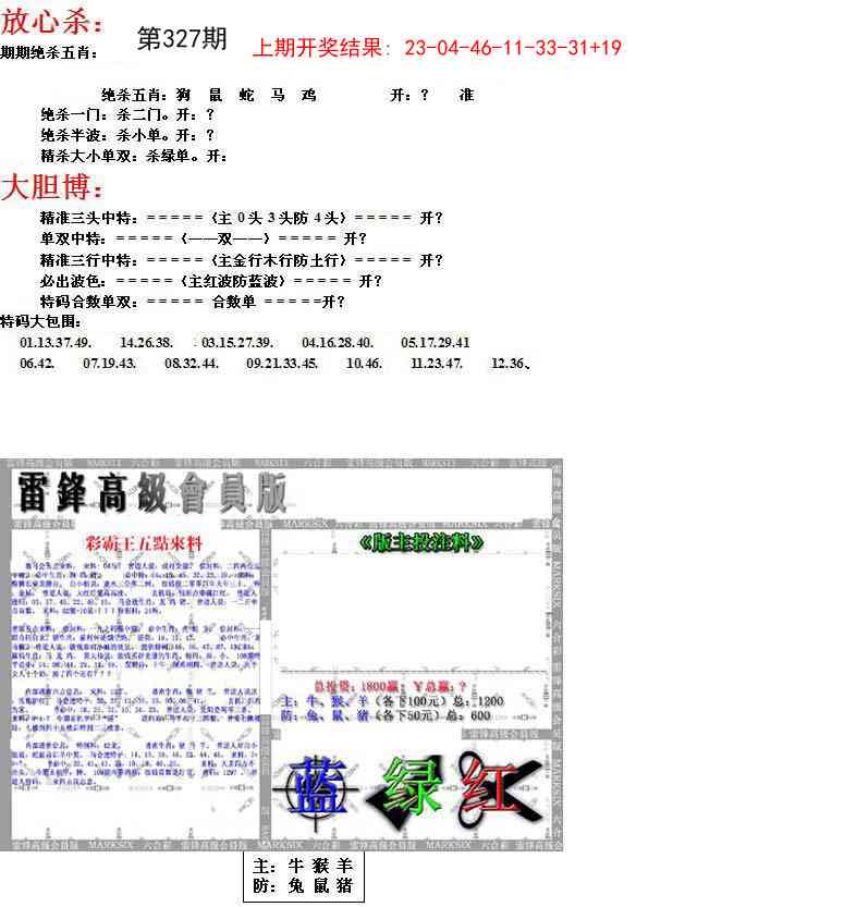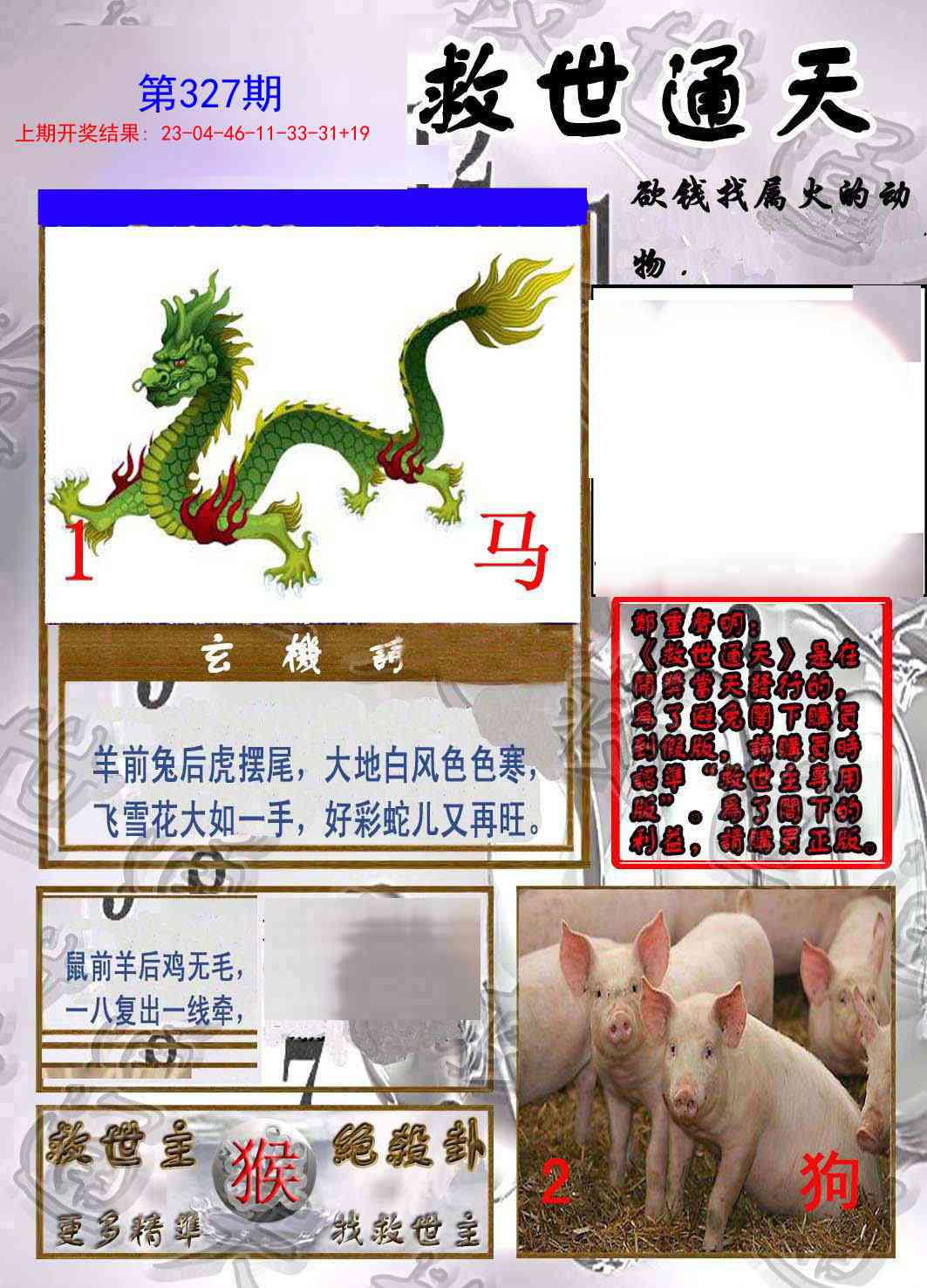 327期:一肖[?] 327期:一尾2