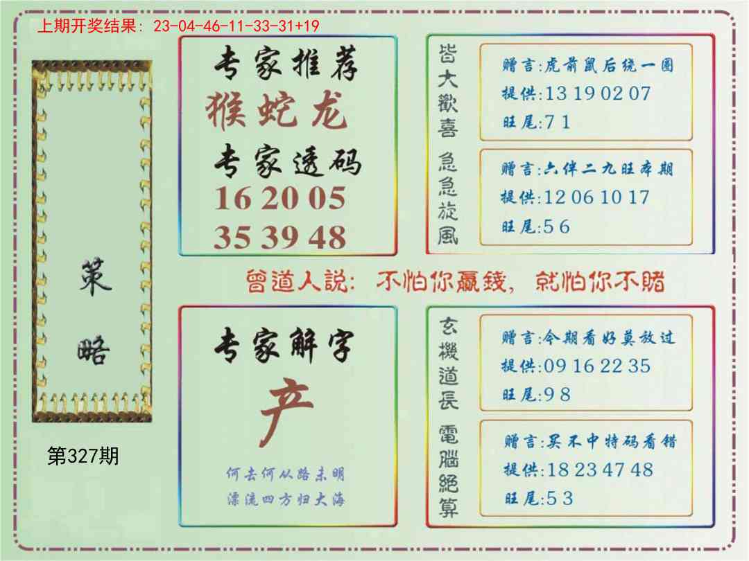 327期:五肖[?????] 327期:五尾2-0-4-6-8